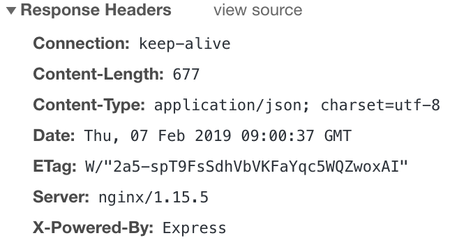 또는 다음과 같이 어플리케이션이 PHP를 사용하지 않더라도 X-Powered-By 헤더가 그렇게 보이도록 설정할 수 있다.